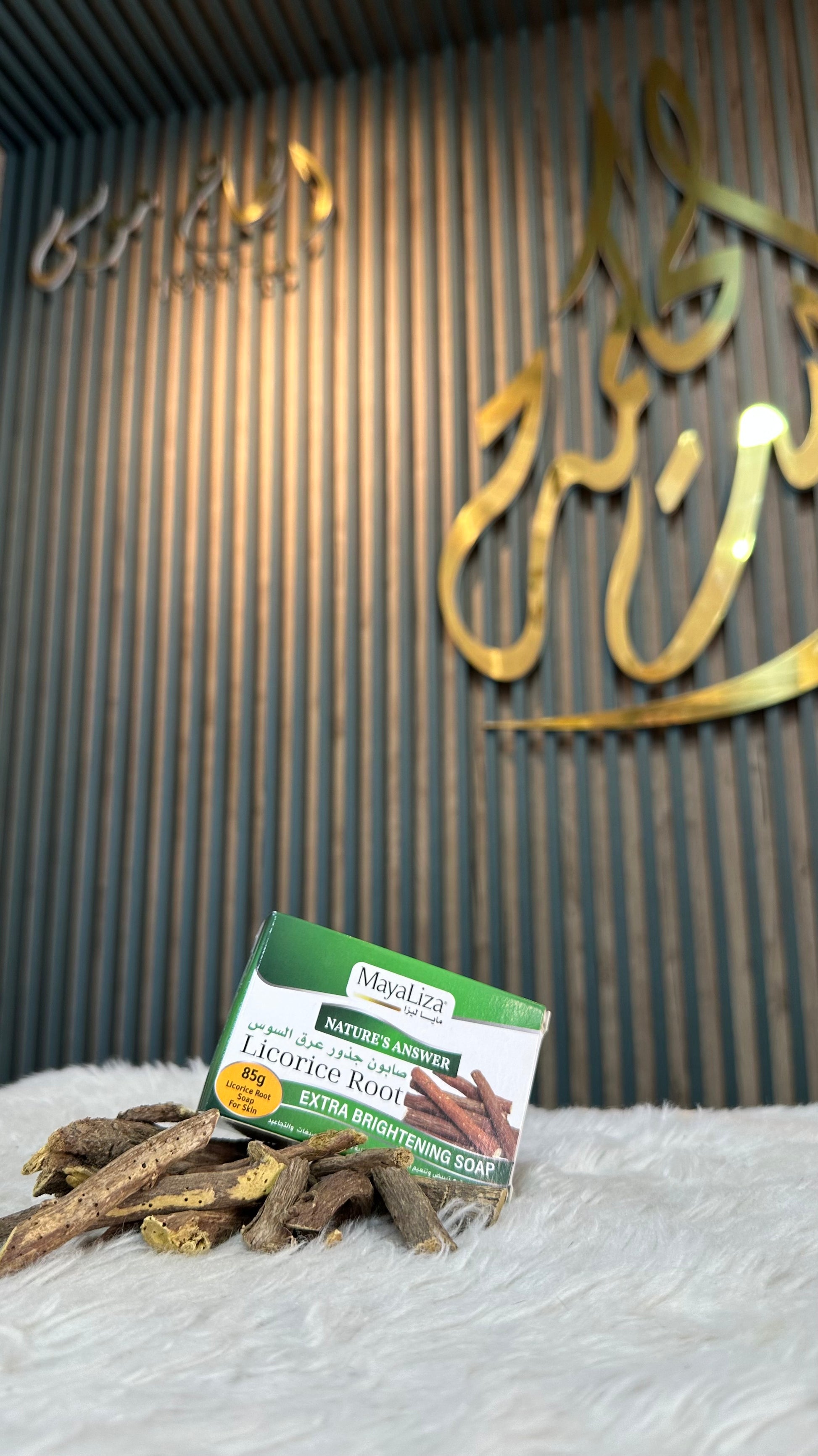 Découvrez un soin naturel éclaircissant et apaisant avec le savon aux racines de réglisse MAYALIZA ✨. Riche en antioxydants et en actifs naturels, il aide à unifier le teint, réduire les taches pigmentaires et redonner luminosité à la peau 🌸.